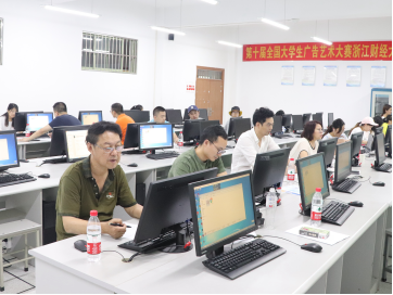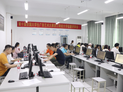 2018年6月19日下午1时,第十届全国大学生广告艺术大赛(简称“大广赛”)浙江财经大学校赛作品评审在人文与传播学院楼307实验室举行。浙江工业大学之江学院项建中教授应邀参加本次评审并担任本次竞赛评委会主席,人文与传播学院的陈朝霞、陆斌、李漪、胡文财、董建华、胡江、王文奇和艺术学院林洲、程艺、于田、朱莉莉等10余位教师担任评委,大赛由王阿蒙老师主持。人文与传播学院党委副书记吴玻老师担任监审组组长,吴智斌和倪璧儿老师作为监审组成员对评审工作进行全程监督。钟鼎广告协会同学参与大赛的服务和分数统计工作。