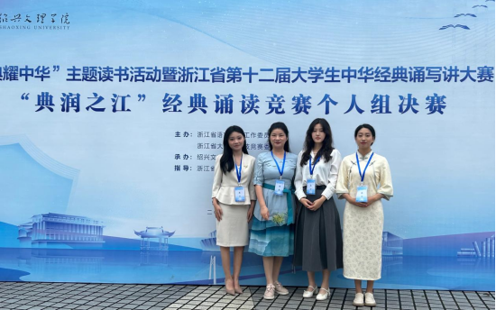 6月22日-23日,浙江省第十二届大学生中华经典诵写讲大赛“典润之江”经典诵读竞赛个人组决赛在绍兴文理学院举行,该项竞赛由浙江省语言文字工作委员会、浙江省大学生科技竞赛委员会主办,属于省级A类竞赛,本次共有54所本科院校的381名选手进入半决赛,其中43所本科院校的116名选手进入总决赛。我校由人文与传播学院王怀榕老师指导带队的选手在本次竞赛中获省级二等奖三项,她们分别是:法学院张烁、外国语学院韩雪以及人文与传播学院代现茹。此外管理学院高源阔和人文与传播学院钟欣妤在半决赛中获三等奖。