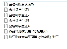 注:报名承诺书需要电子签名,最后必须以zip或rar压缩包整理所有文件,文件命名同作品文件,可参看下列图示举例: