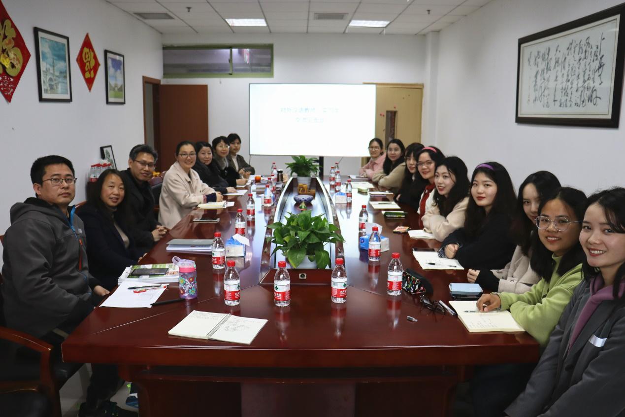 院长助理吴智斌、汉教专硕负责人刘传鸿、研究生秘书刘华婷及8位2020级汉硕实习生前往国际学院,同国际学院院长助理赵倩、教研室主任夏群、教研室副主任贾芹、创新创业中心主任金德锋等举行了一场师生交流见面会,受到了国际学院的热情招待。会议期间,双方围绕实践形式、实践内容和实践要求进行了初步探讨。