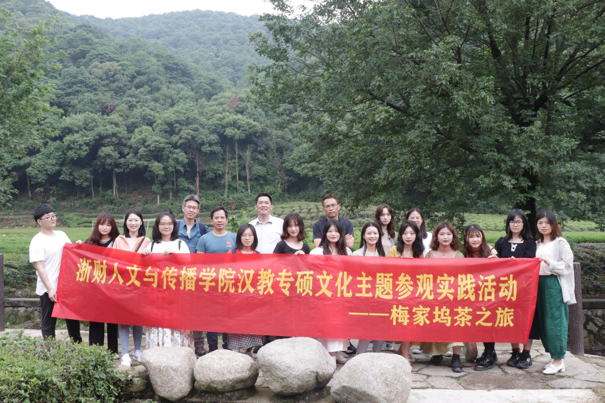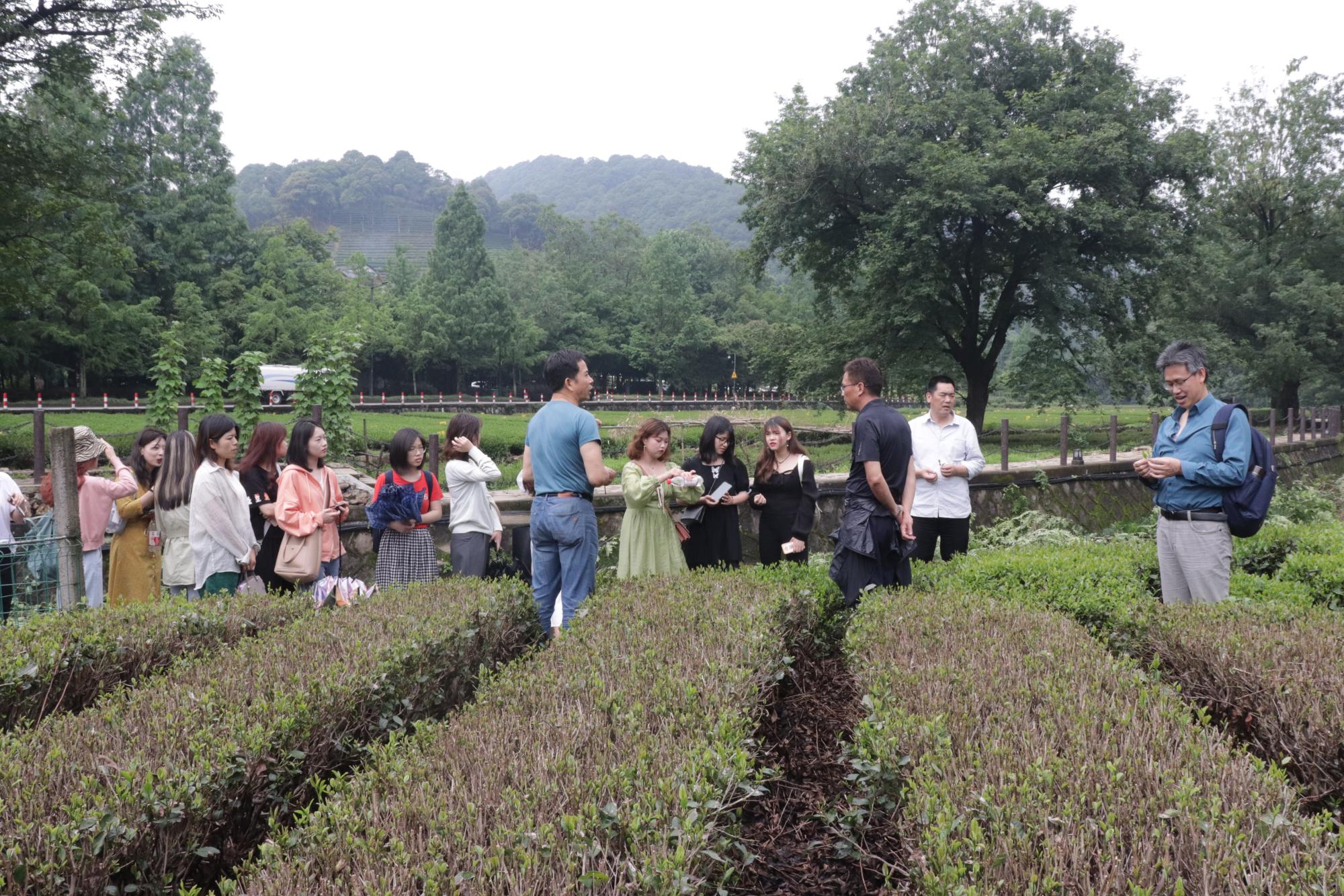 5月26日上午,我院院长周保欣、汉教专硕点负责人刘传鸿、教授委员会主任赵顺宏及研究生辅导员刘华婷老师带领汉语国际教育专业硕士20余人一起前往著名的西湖龙井茶产地—梅家坞,开启了茶文化主题参观学习活动。