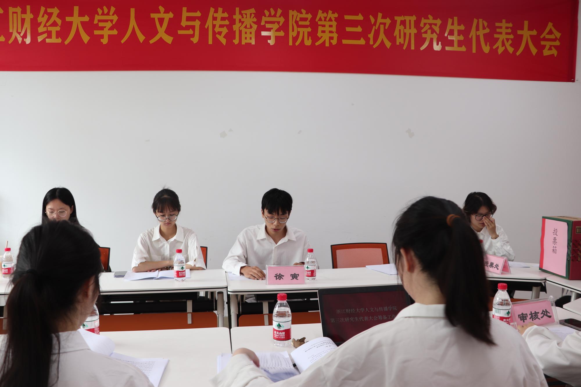 第三次研究生代表大会在人文学院楼(7号楼)403隆重召开,本次会议出席人员有大会秘书长刘华婷老师、徐寅同学以及15位研究生正式代表。