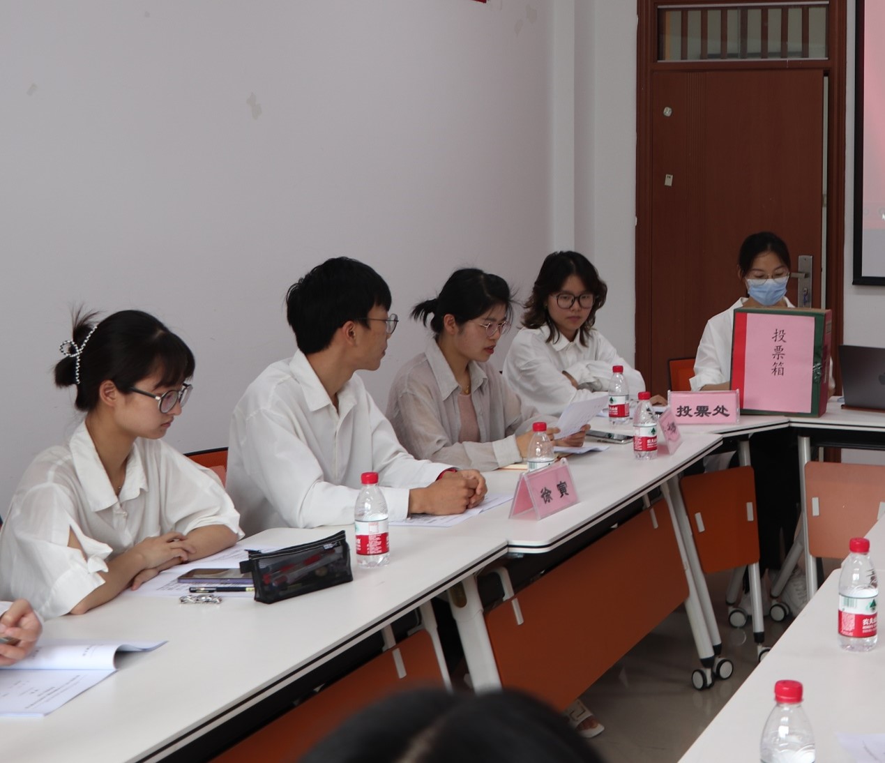 委员会委员和主席团成员选举,总监票人刘华婷老师全程核实,各研究生代表填写投票,计票人统计各候选人选票,最终由刘华婷老师宣布计票结果,选举卢慧珊、杨佳慧为足球直播在线-360直播足球