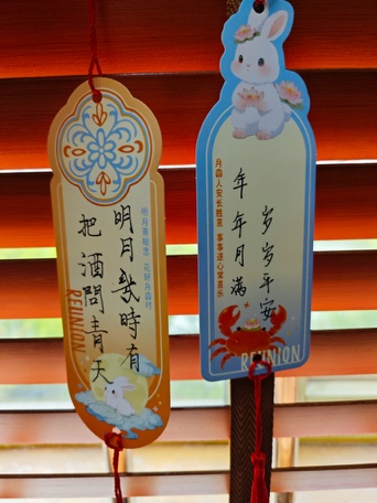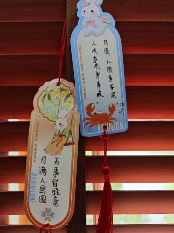 活动的尾声,大家将中秋祝福语写在许愿签上。方寸许愿签上,有对学业的期盼、对友谊的珍视,更有对世界和平的美好祈愿。点点心意汇聚,为此次中秋聚会画上了温情圆满的句号。