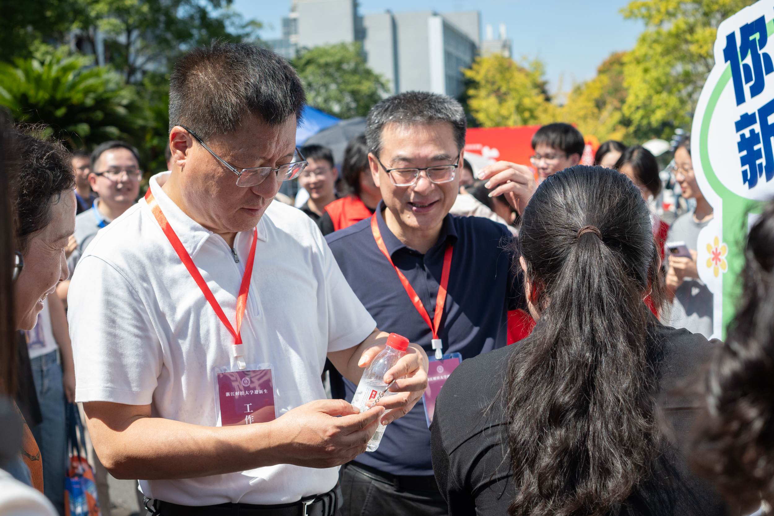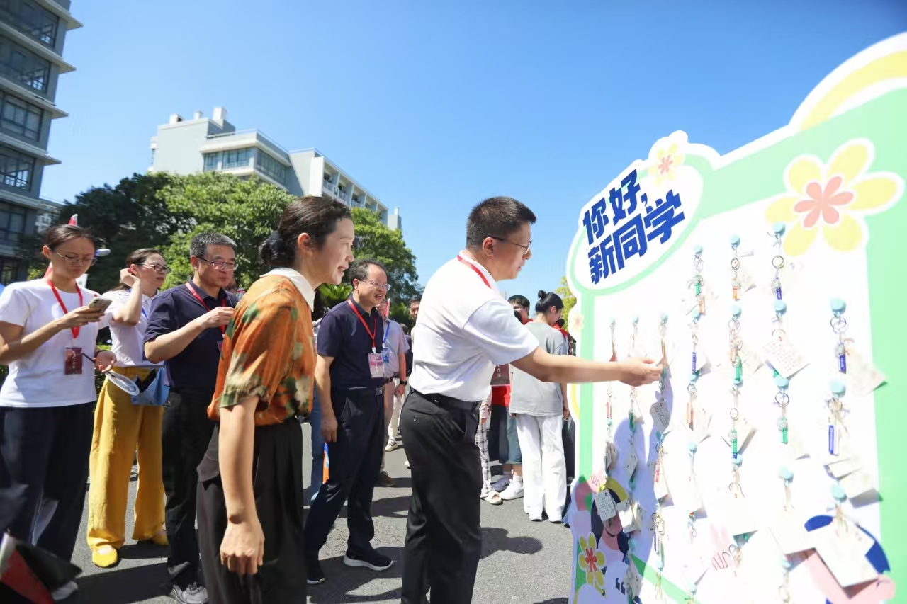 迎新现场,学院为每一位新生定制了文创钥匙扣、明信片,还同步推出 “一站式暖心服务”,由志愿者带领新生与家长逛校园、观看宣传片、聆听专业介绍,现场更设置打卡点定格初遇浙财的影像,助力每一位萌新与家长直观感受学院氛围,对未来的大学学习生活满怀期待。