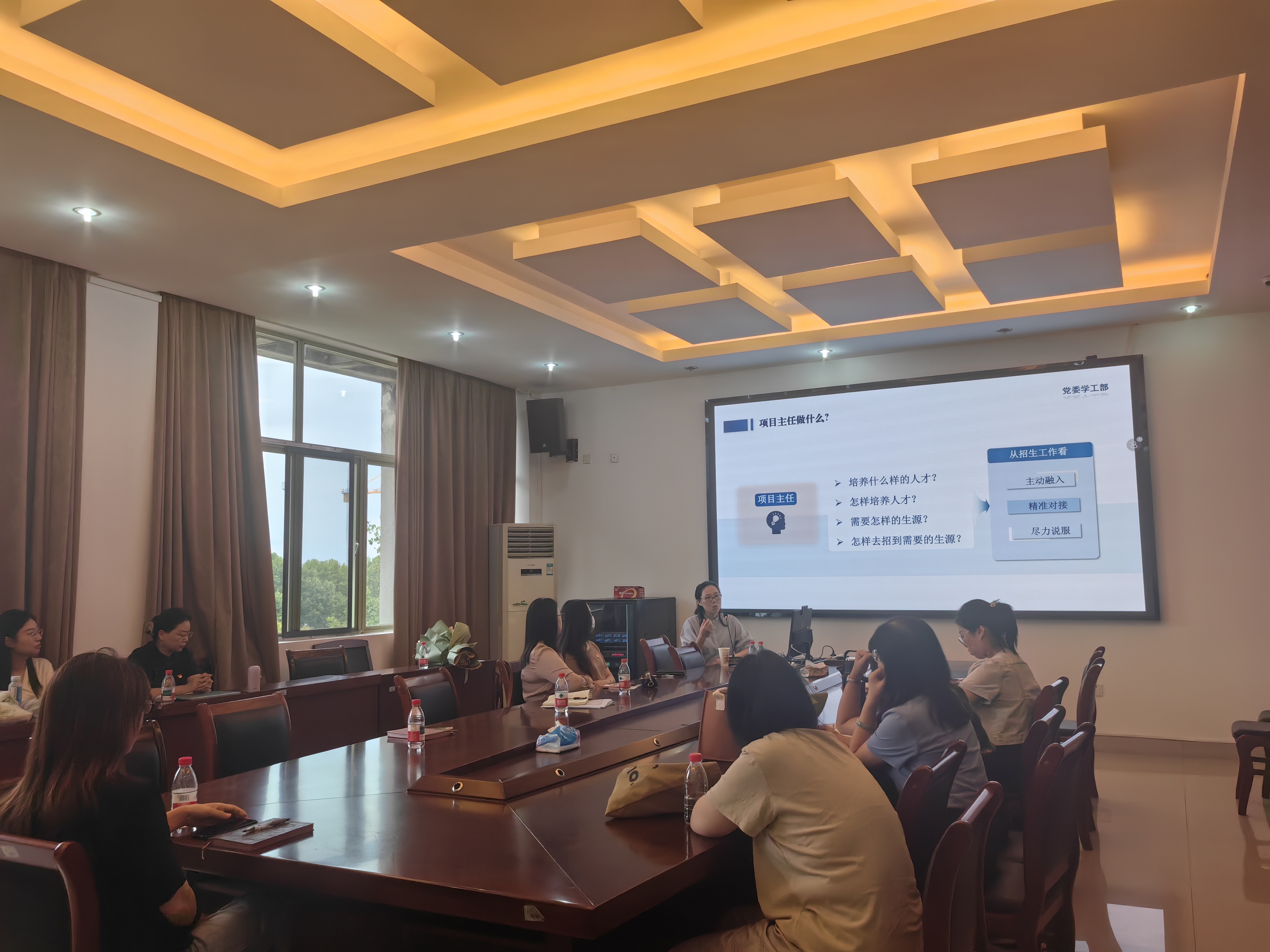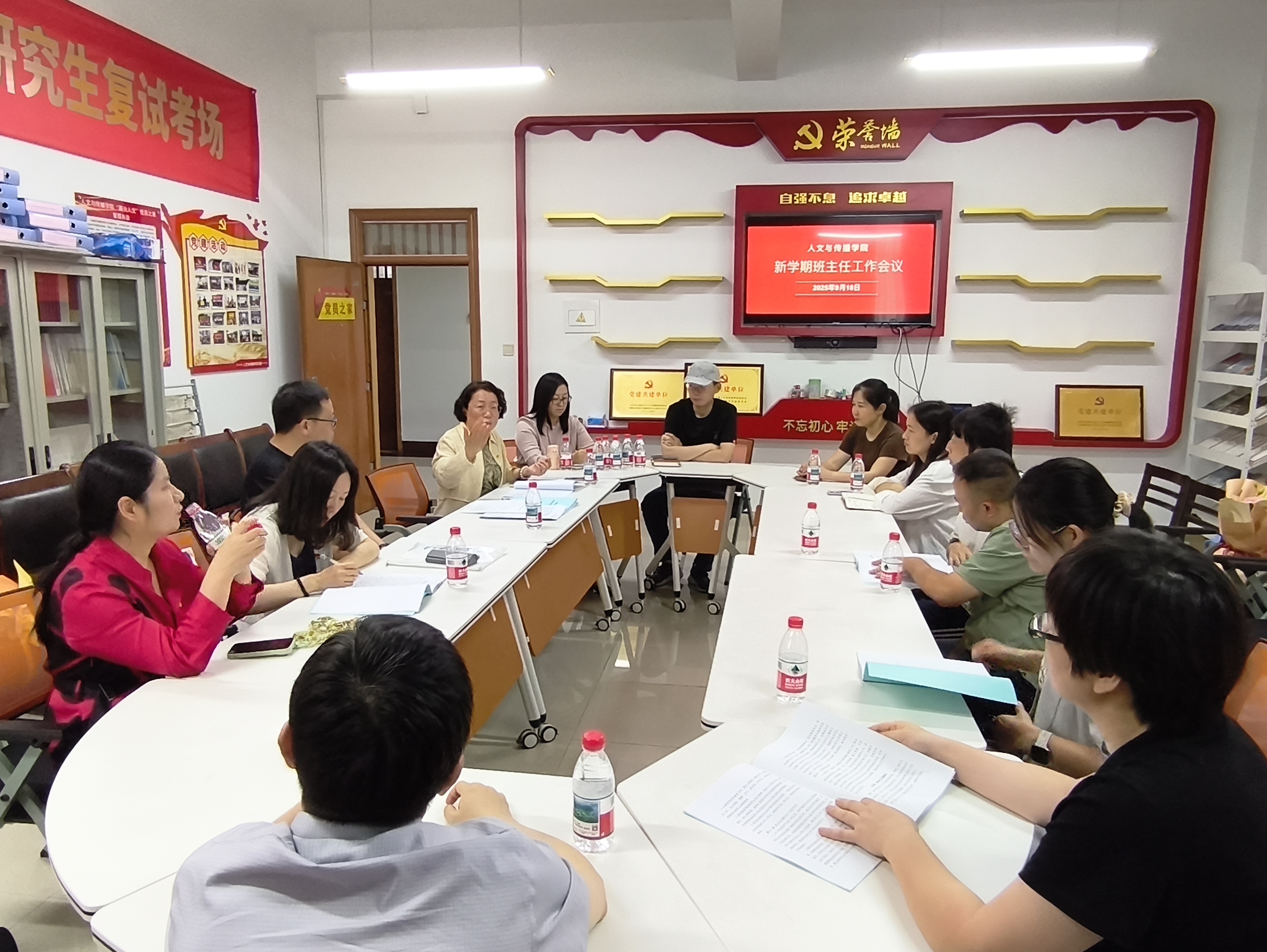 先后召开了“铁三角”项目建设宣讲答疑会和新学期班主任工作会议。学院领导班子、“铁三角”项目主任、全体班主任、辅导员及中文学科专业教师分阶段参会。