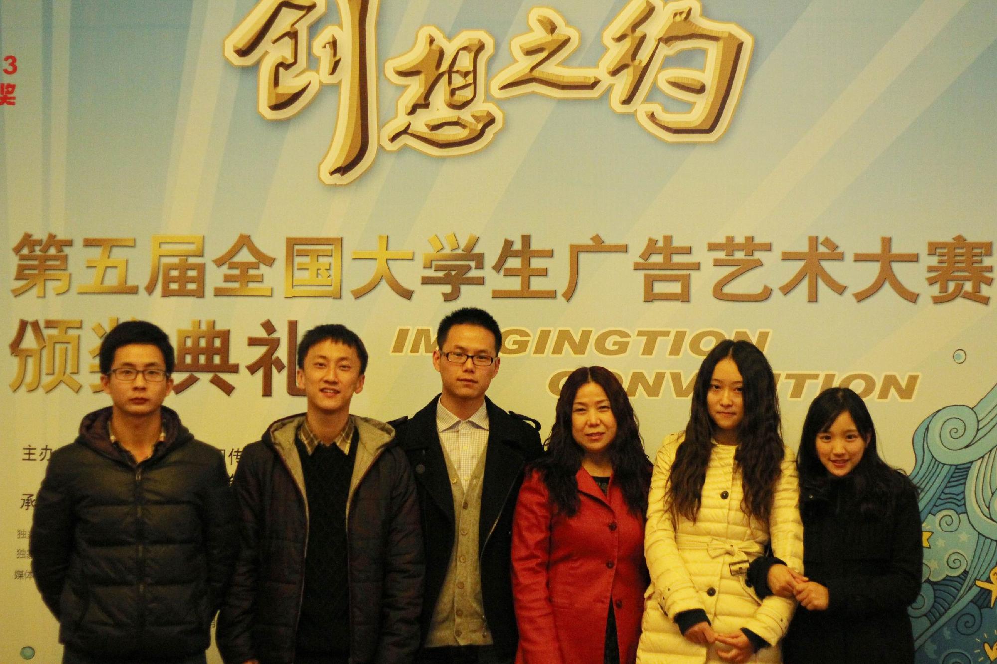 近日,第五届全国大学生广告艺术大赛在全国政协礼堂举行颁奖典礼,我校人文学院副教授陈朝霞老师率我校5名师生领奖。