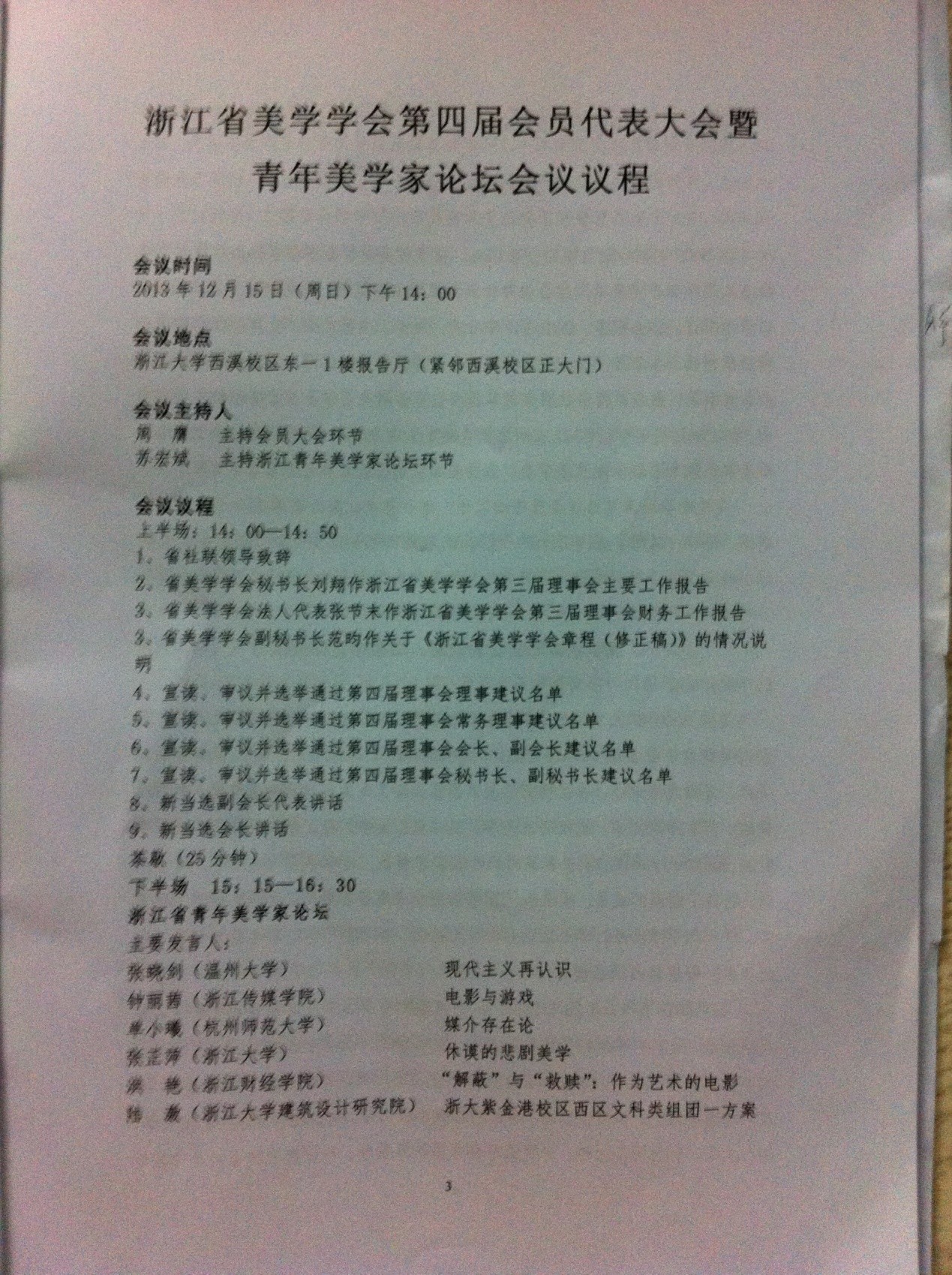 12月15日下午,浙江省美学学会第四届会员代表大会暨青年美学家论坛在浙江大学西溪校区东部一楼报告厅举行。会议由杭州市社会科学院副院长周膺、浙江大学人文学院副院长苏宏斌主持。