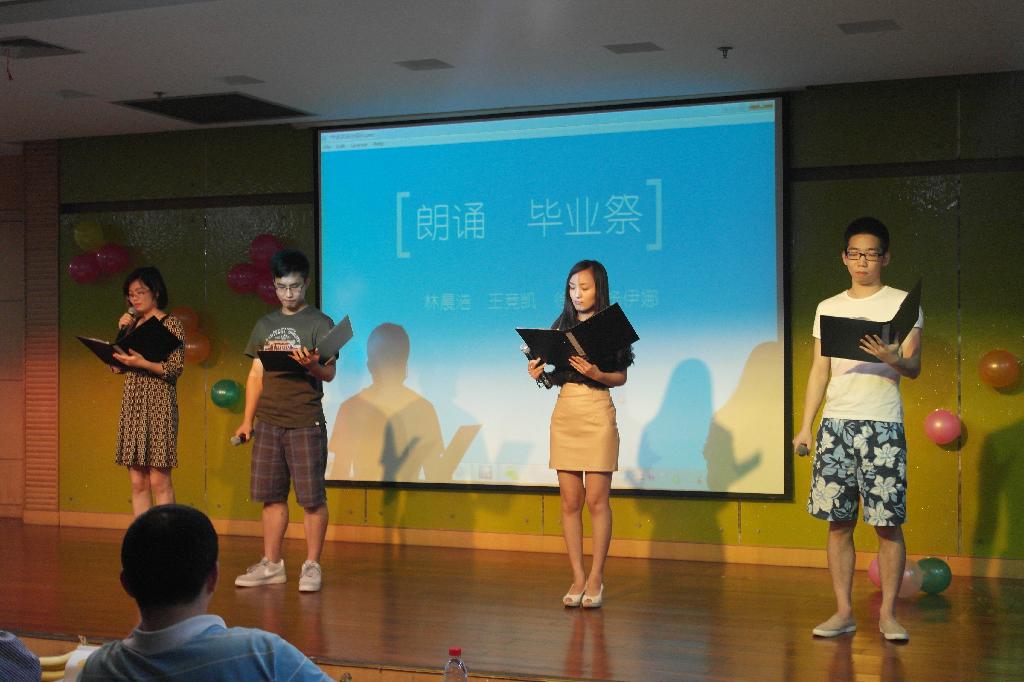 乐声淡去,陪伴了09文学四年的辅导员袁慧兰、系主任吴智斌、班主任许宏香、赵顺宏教授等上台致辞,为见证了点滴成长的学生们,为即将踏上人生新旅途的学子们,给予了谆谆教导和离别祝福,博得同学们的掌声与喝彩。