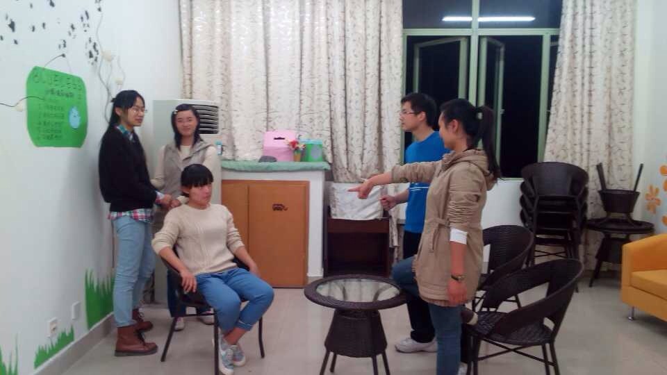 周五晚6时30分,精彩的角色扮演上演了。扮演关于心理剧情的角色,摸索演员的心理;观看关于心理剧的表演,透视自己的心灵。把小栈中间位置的桌椅移开空出一块地,六个小栈的会员,各自站好位置拿着剧本,声情并茂演的形象逼真,捕捉到了人物的心灵世界,喜怒哀乐错杂其中,演得淋漓尽致!动情之处更是情感饱满。亲临小栈的同学们坐在沙发上一边喝茶一边观看,笑语起伏不定。在现场观看一场有同学演的表演,真正感受到了那一份用心,丰富了同学们的学习生活,更为心灵腾出一片净土去热爱自己、生活。