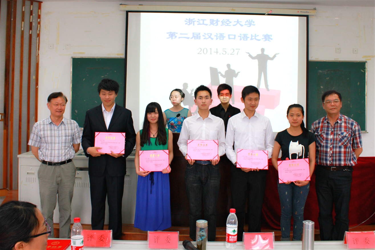 为提升大学生的汉语口语表达能力,提高大学生的语言文学素养,2014年5月27日,浙江财经大学大学生竞赛委员会举办了浙江省第二届大学生汉语口语竞赛选拔赛暨浙江财经大学第二届大学生汉语口语竞赛的决赛。来自本校不同学院的14位同学参加了比赛。本次大赛由人文学院承办。人文学院副院长姚红教授致辞,汪化云教授、姜岳斌教授等6位老师担任评委。