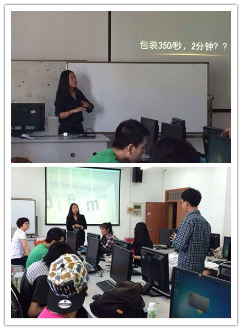 潘飞老师,时光坐标影视学院高级资深合成师,主要从事电影和电视剧的电脑特技、后期制作、电脑动画片、电视广告电视栏目包装等项目的专业制作,曾为电视剧《飞鱼传奇》、《蓬莱八仙》、《钱塘传奇》以及电影《痞子英雄2》、《夺路而逃》等大型影视剧,进行后期电脑动画特效制作。她作为数字媒体艺术专业“基地精英进课程”活动的第一位老师,在本次课堂上讲解了电视广告和电视栏目包装专业制作的内容,介绍了影视企业合成制作人才需要的条件和能力,阐述了影视后期制作具体的工作流程。并给同学们播放了她执导的几段毕业生demo,引发了同学的一片赞叹。同时,潘老师用一段现场制作的实例——“大雪纷飞的山水运动”影像,剖析了AE中摄像机设置、三维空间搭建和动画曲线调整等专业技术知识点,演示了具体运用创意和软件制作过程。此次课程的内容多为同学们尚未接触的领域,引发了大家的好奇和学习热情。