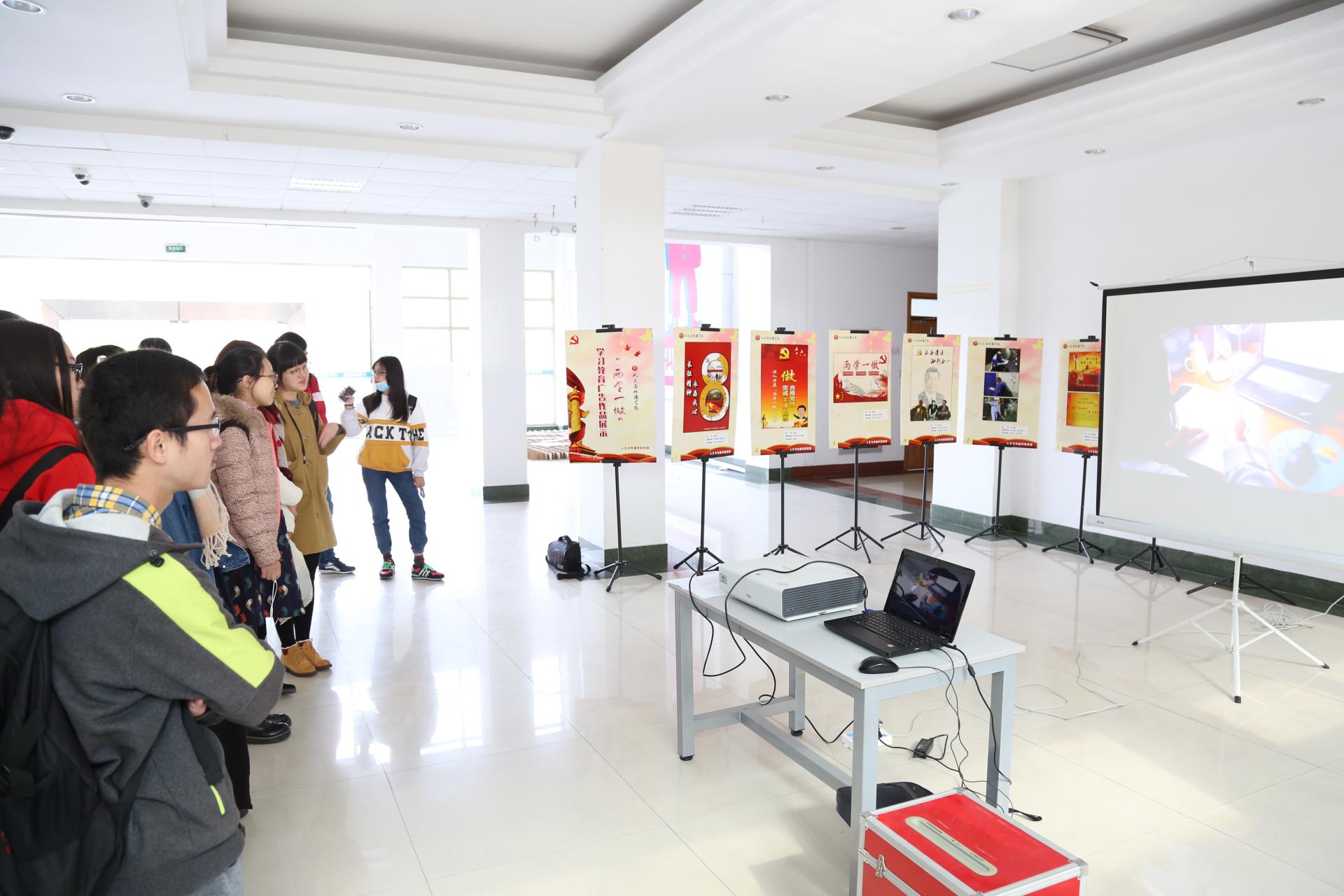党委进行为期5天的“两学一做”广告作品展。学院组织了100多名师生党员进行了参观和现场投票。