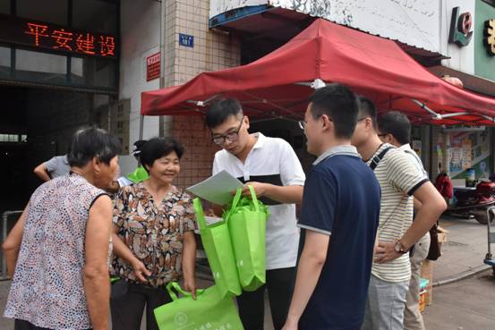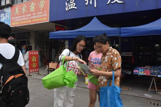 座谈结束后,服务团的队员们针对当地居民进行走访和做调查问卷,了解当地的环境现状、居民的环保意识以及对环境保护的态度等问题,同时发放了环保袋。