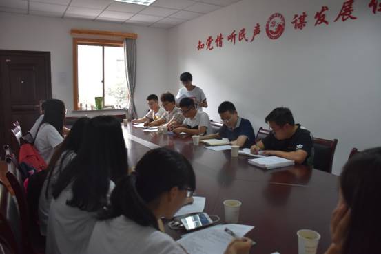 下午, 暑期社会实践服务团在斜桥镇团委的陪同下,来到庆云社区,与各个村和社区的团委书记进行了座谈,讨论了乡镇环境保护、文化进村、暑期支教等事项。