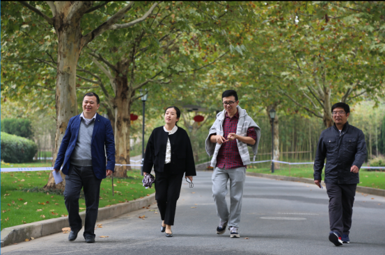11月7日中午,大家在学涯湖畔留下美丽的个人照后,沿校友路徒步走,带着轻松愉快的心情,大家时而望望远处的山坡,时而看看路边花草树木,三三两两徐徐前行,一路欢歌笑语,向着终点前进。