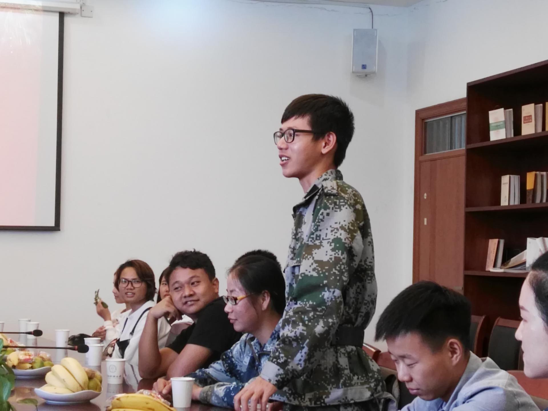 在师生交流环节,学生们纷纷提出自己学习中问题和成长中的困惑,学院领导和老师一一给予以解答和指导。其间,老师们还将月饼、水果等点心分发给同学,会场氛围温馨,笑声不断。