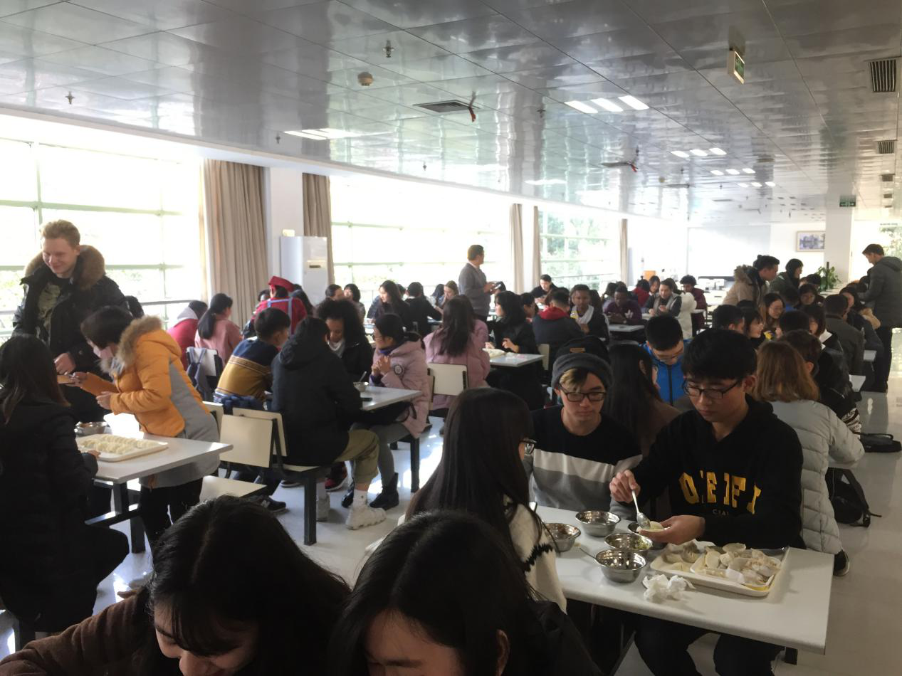 主题班会恰逢冬至前夕,在中国民间就有“冬至大如年,饺子不等闲”的说法,这次班会便别出心裁地采用包饺子、吃饺子的活动形式,让留学生们感受到中国传统民俗,品味中华传统美食。
