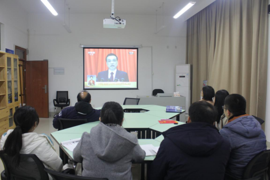 组织师生利用工作学习间隙,利用电脑、手机等多种形式观看直播,认真聆听李克强总理的政府工作报告,关注“两会”动态,热议2019年全国“两会”的胜利召开。