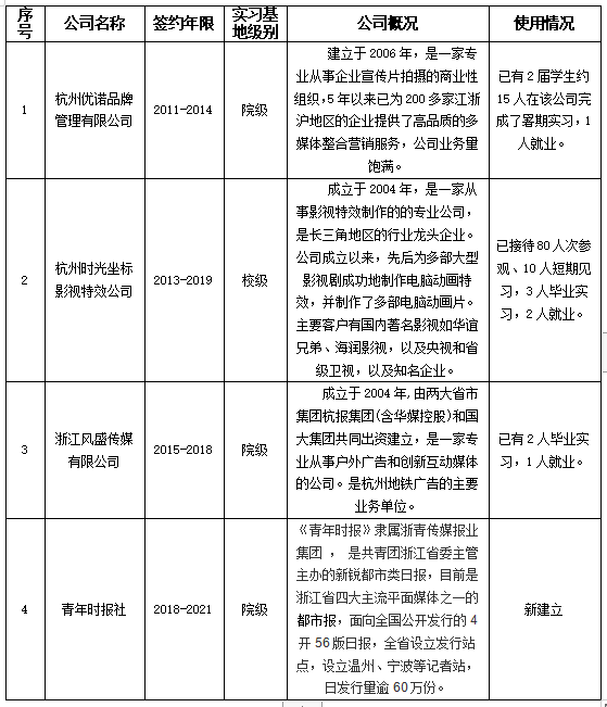 的深厚人文基础,形成媒体传播知识和制作技能融合、技艺兼备的复合型人才定位。专业的服务面向是网络媒体、广播影视、广告行业,并满足浙江省中小企业对复合型传播人才的需求。