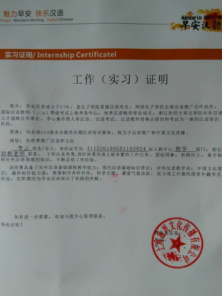 李云实习证明