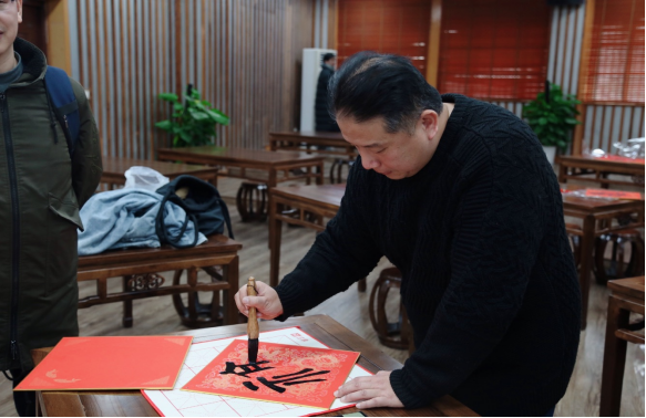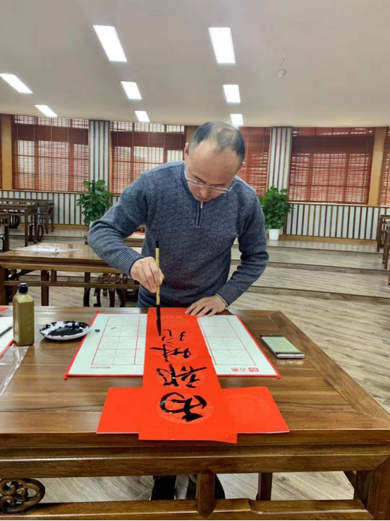 12月28日下午,在学院问津书院,学院教师周寒筠和赵文源老师为教职工现场写“福”字和春联。现场墨香四溢、喜气洋洋,红红的福字和灿烂的笑脸将活动现场烘托得格外的火热和喜庆,老师们高兴地展示他们刚刚拿到的“福”字和春联,喜悦之情溢于言表。