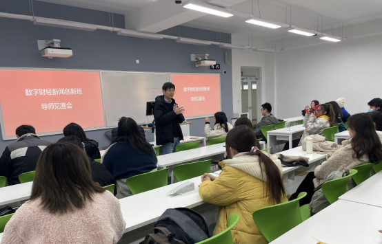 在A108教室举办2021级数字财经新闻创新班学生、导师见面会。本次见面会由创新班执行人王文奇主持,足球直播在线