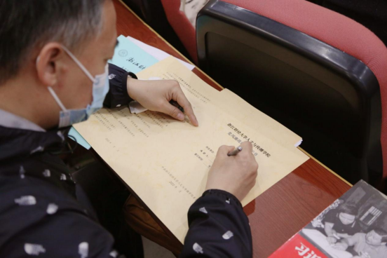 同时,大会还进行了师德师风专题教育,学院党委书记高燕带领全院教职工集体学习《浙江财经大学建立健全师德师风建设长效机制实施办法》《浙江财经大学教师师德失范行为负面清单及处理办法》《浙江财经大学开展师德专题教育实施方案》《新时代高校教师职业行为十项准则》等文件,并进行案例警示教育。要求全体教师要努力提升自身道德素质,坚守正确的政治方向,爱国守法潜心育人。建立良好的师生关系,用榜样力量和人格魅力感染、感召、影响学生,真正把教书育人和自我修养结合起来,维护良好的教师职业形象,以德立身、以德立学、以德施教。会议还强调疫情防控工作及学院发展及安全稳定等相关事宜。会上签署了《师德师风承诺书》、《教学科研人员廉洁从教从研承诺书》。