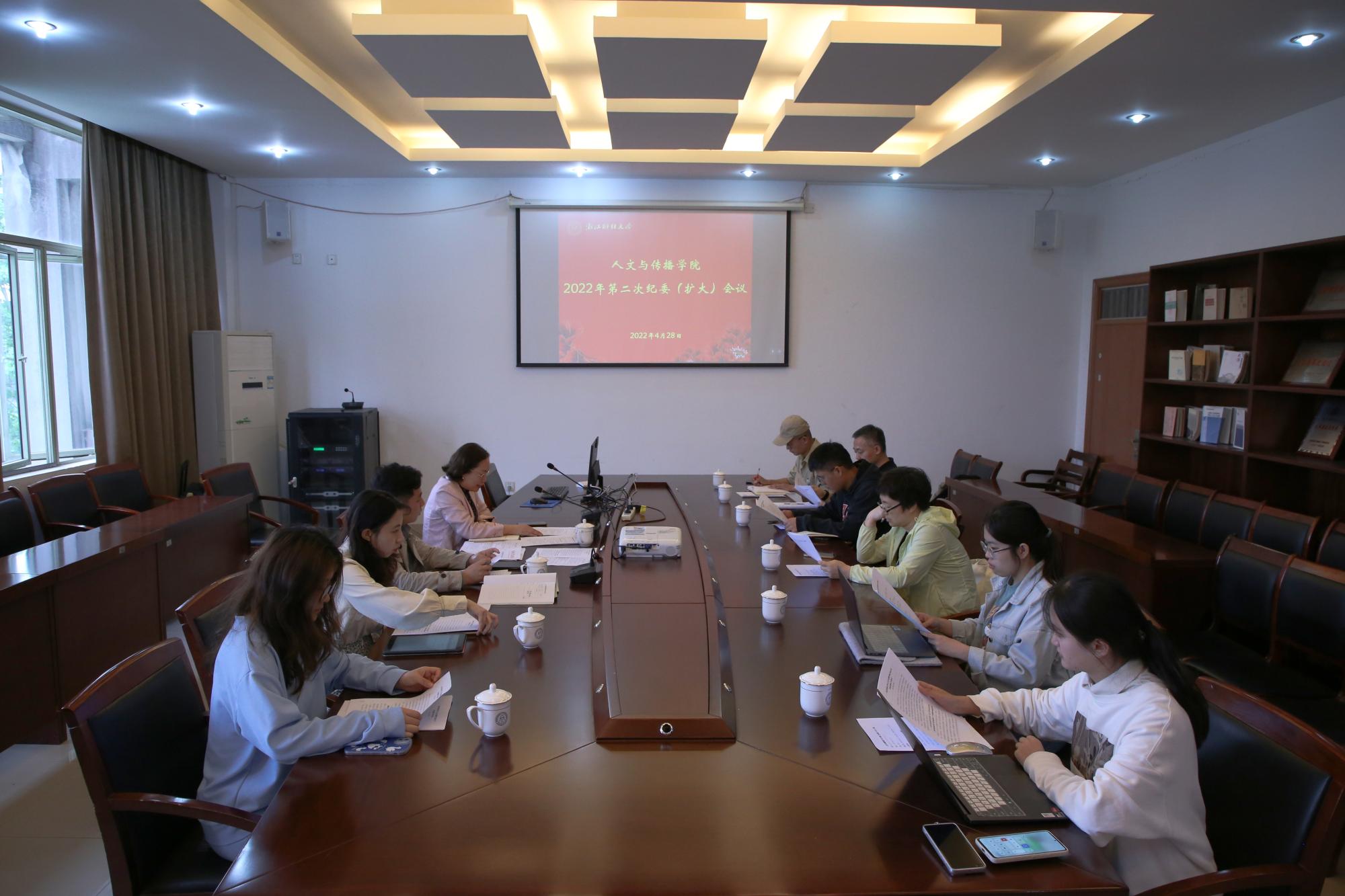 袁慧兰首先传达了学校2022年第二次纪委(扩大)会议精神和学校最新疫情防控通知精神,要求全体与会人员严守纪律规矩,从严开展监督工作,落实立德树人根本任务。与会人员集体学习了《关于从严从紧做好2022年“五一”假期疫情防控有关工作的公告》、《关于进一步落实疫情防控各项要求的通知》以及《关于持续加强防疫监督工作的通知》,并通报了高校学生违反疫情防控规定的典型案例,希望全体纪检监察人员以案为鉴,推动各项防控措施落实落细落地,为筑牢防疫屏障提供坚强纪律和作风保障。会上还传达学习了近期浙江省纪委典型案例通报,在五一、端午假期来临,更要持续加固中央八项规定精神堤坝,扎实推进清廉学院建设。