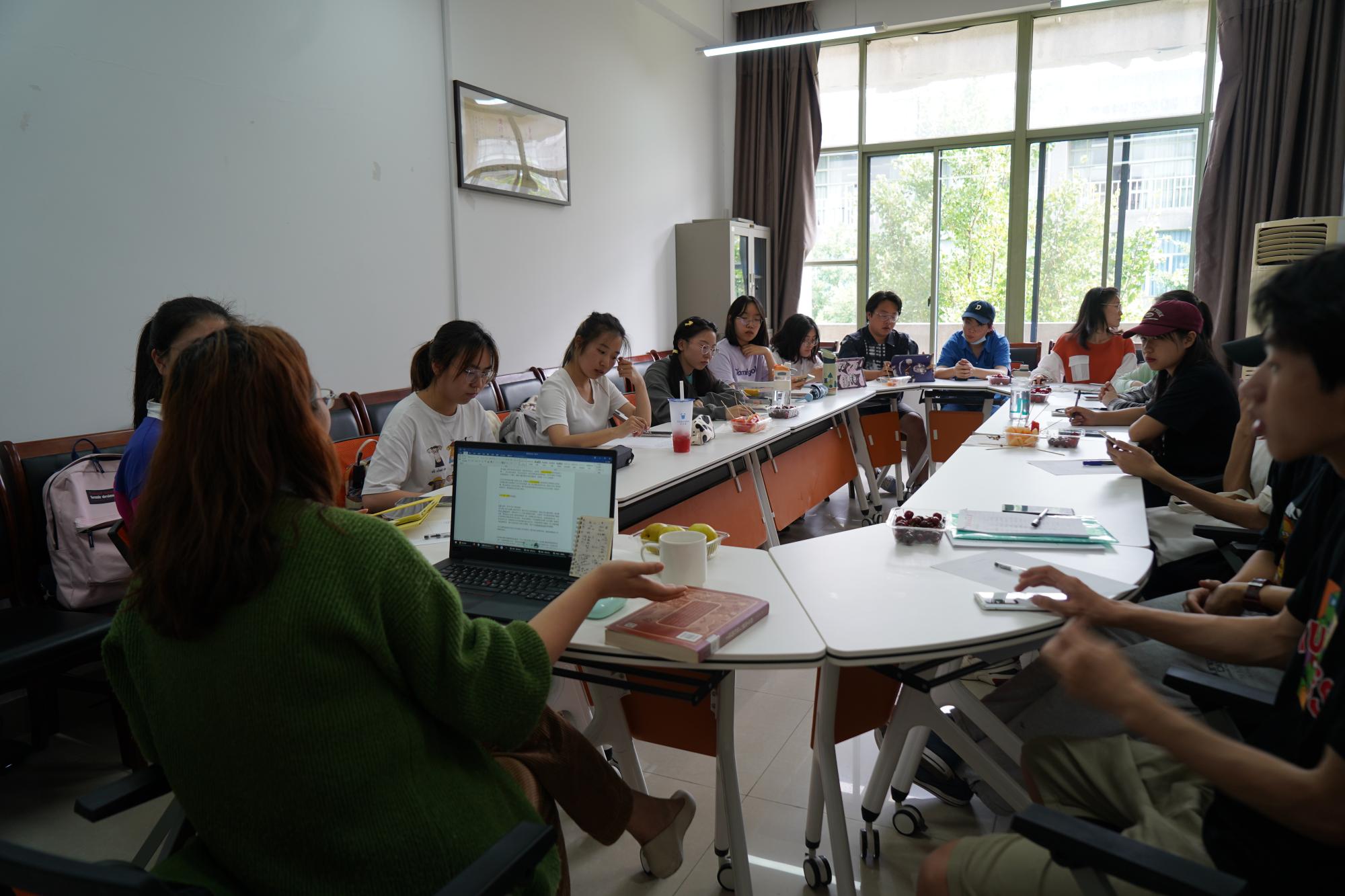 最后胡梦颖老师鼓励大家在大学期间要多读一些学术性的书籍,这对于同学们今后写毕业论文,从事学术研究,很有帮助。为了减轻学术性文本讲解的枯燥,胡梦颖老师将文本内容与当前错综复杂的国际形势、疫情反复下大学生考研就业等热点话题相结合,引发了同学们对于本科期间学习和毕业后安排的热烈讨论。