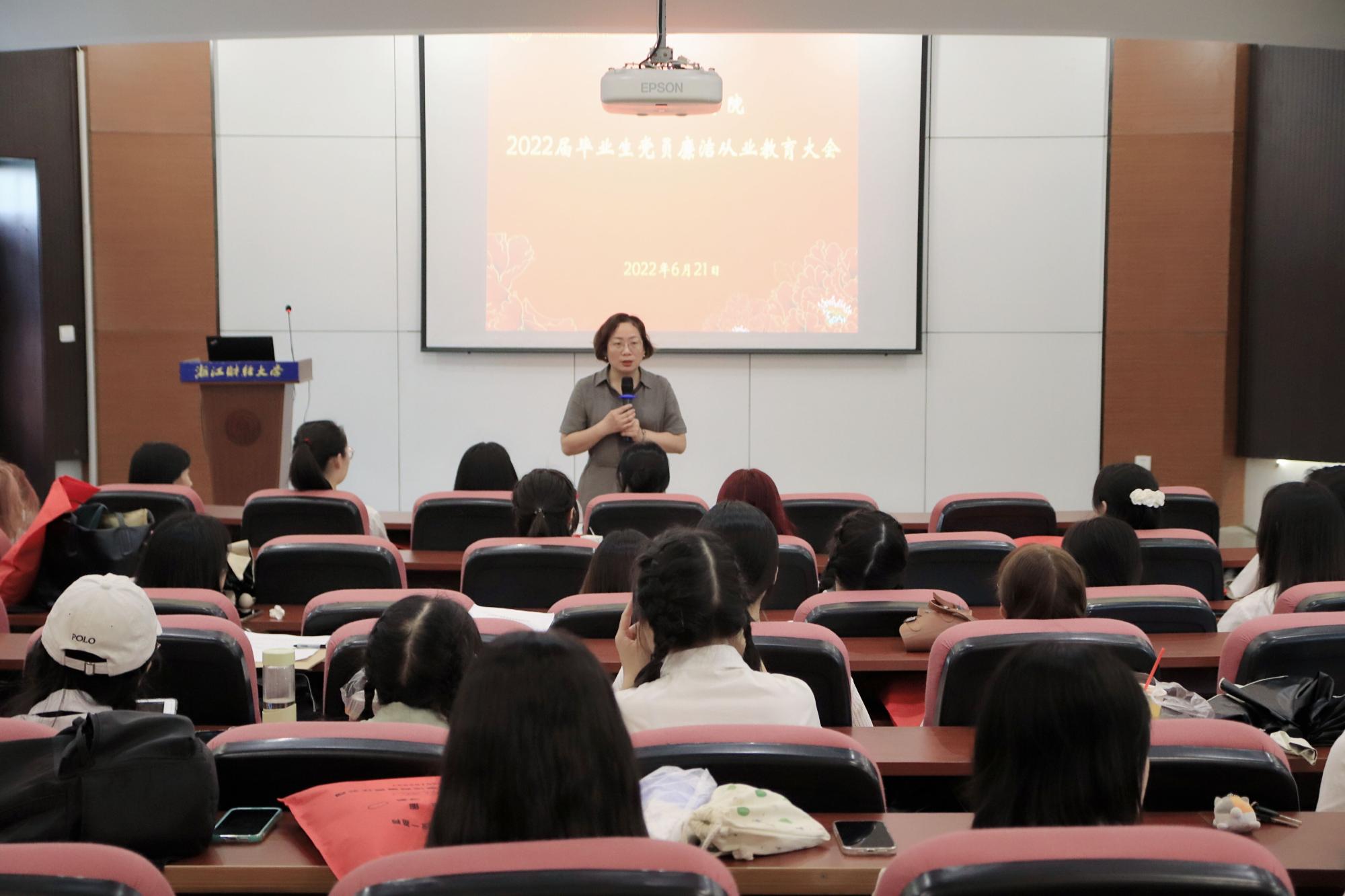 2022届本科毕业生党员廉洁从业教育大会在112报告厅举行,学院党委副书记、纪委书记袁慧兰主讲,全体2022届本科毕业生党员参加。