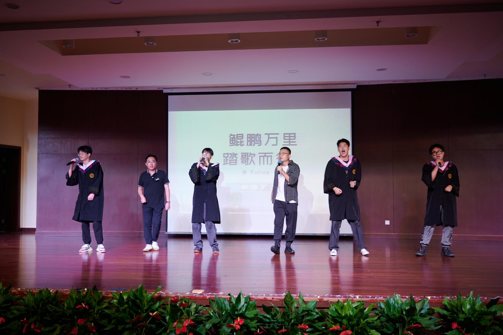 在随后的毕业晚会上,毕业生们通过精心准备的节目如《WAVE》、《一生所爱》、《屋顶》等表达了对毕业同学们最诚挚的祝福,也有陈朝霞老师的歌曲《吐鲁番的葡萄熟了》和王阿蒙老师参与的舞蹈《爱你》给这场晚会留下了浓墨重彩的一笔。最后,在李坤、马羚凯和万秋萌老师的带领下,以《鲲鹏万里,踏歌而行》的“歌曲串烧”形式向毕业生们送上了最真挚的祝福,希望他们鲲鹏万里扶摇翱九天,踏歌而行不负青春韶华。