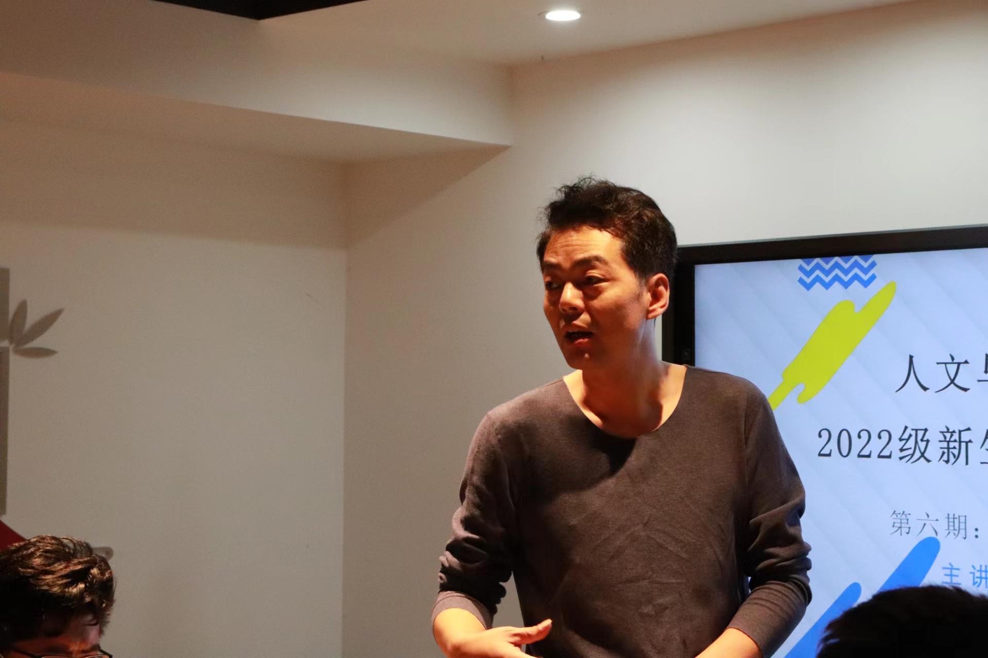 “任何目标都不能只是被当作口号,实践才能出真章。”活动中,胡江老师向学生提问:“你们对这半年的大学生活有什么感受?”同学们大多感到迷茫。对此他指出,什么感觉都没有似乎已经变成了大学生生活的常态,大批人在课程结束后除了学分,一无所获。他以自身教授的微电影创作课为例,提出关于课程相关的摄影、剧本创作、设计等知识在之前学校已有专业的授课,但在课程中,却仍感觉学生的相关基础知识薄弱,授课中出现心有余而力不足的感受。究其根源,是学生对已学习的知识不懂得贯通、延伸和利用。先前学习的专业知识到最后不能汇总,不能运用到最后综合性的个人作品中。因此,他建议同学们不要学了就扔,学了就忘,要真正转化为自己的东西。