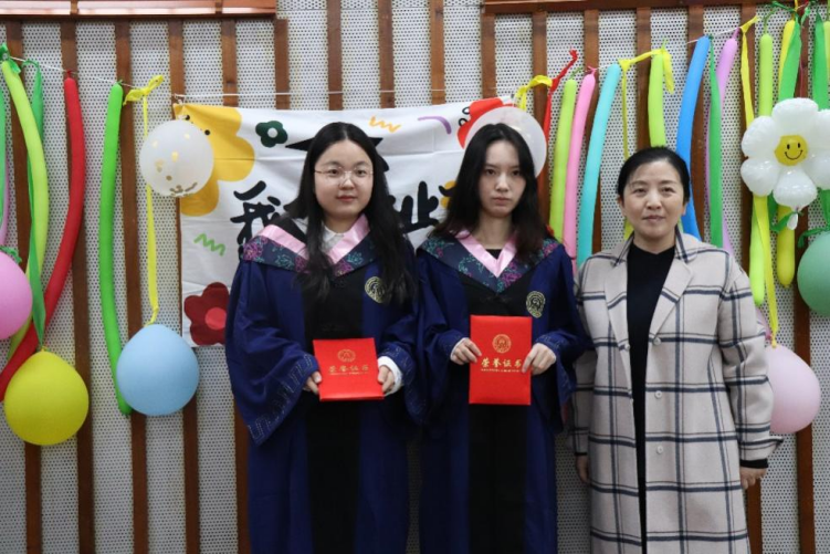 高书记为校级优秀毕业生郑泽霞、黄诗琴颁奖,为校友联络员倪飞跃、侯佳宁颁发聘书。
