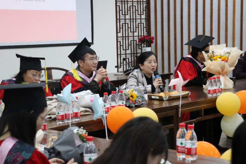 2023届研究生毕业座谈会在问津书院举行。院长周保欣、党委书记高燕、副院长陈静、党委副书记袁慧兰、硕士研究生导师赵顺宏、付琼、荆亚平、徐键、崔霞、毋丹等、研究生辅导员刘华婷及2023届研究生参加座谈会,座谈会由党委副书记袁慧兰主持。