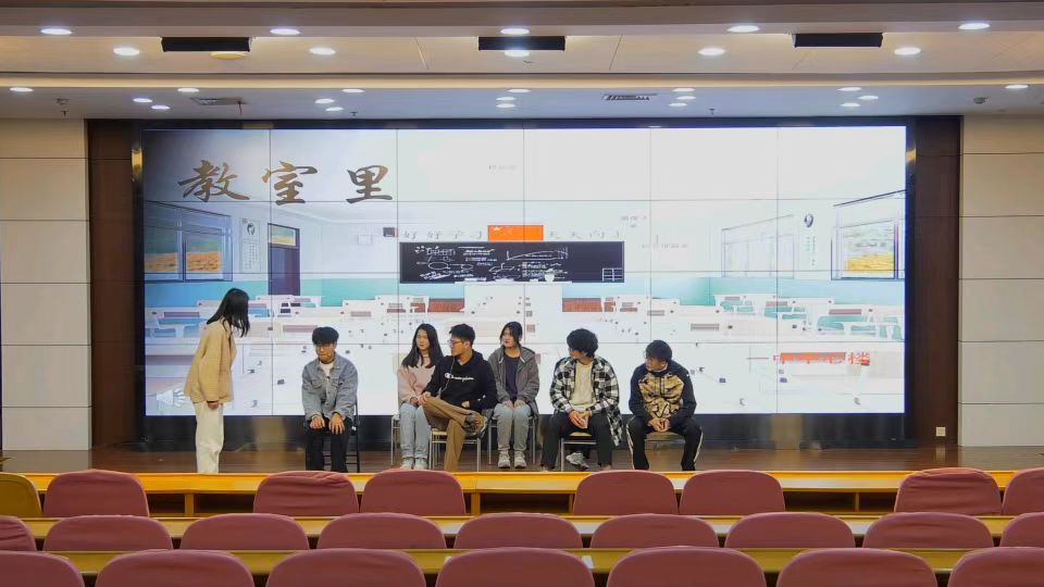 2022级新传2班学生范雨冰编导,肖仲博、赵经纬等人主演,讲述的是患有社交恐惧症的小肖因为父母的不理解和敏感的内心,对自己喜爱的音乐产生怀疑,最终在辅导员和室友的帮助下重拾自信,和不完美的自己和解。演员们将自己完全代入角色中,以紧凑的剧情和细腻的情感表达,把在场的各位都带入这个温暖的故事。