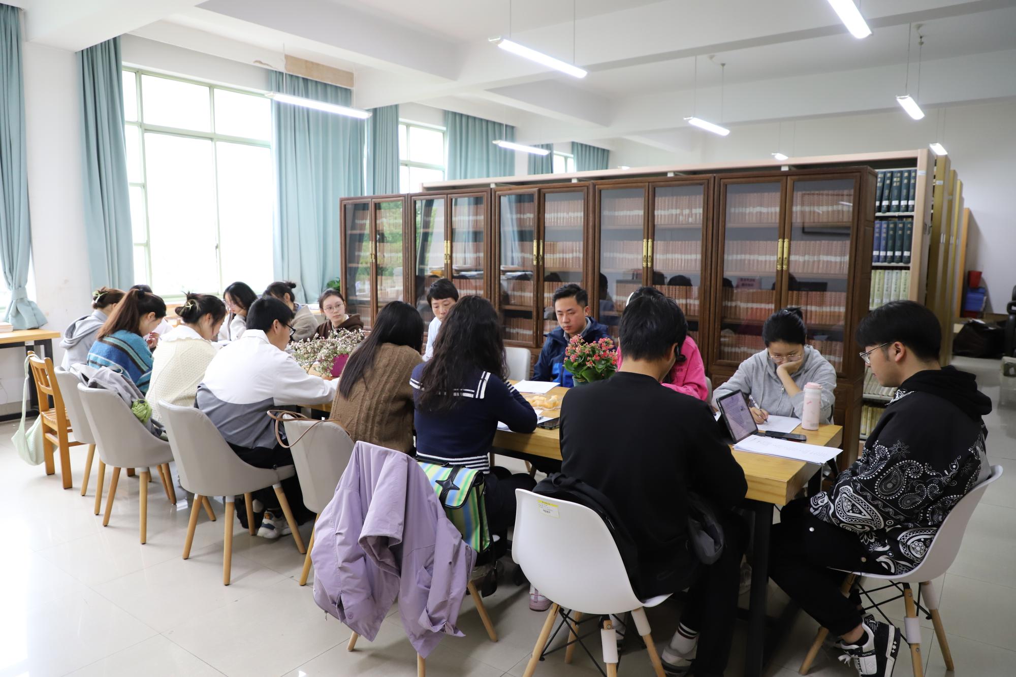 第二十二期心理“悦”读会在7号楼415举办。本次阅读会由熊啸老师主讲,袁慧兰老师、马羚凯老师以及二十余名同学携着千年前古人的沉思齐聚一堂,共同鉴赏古诗韵趣,分享生活点滴。