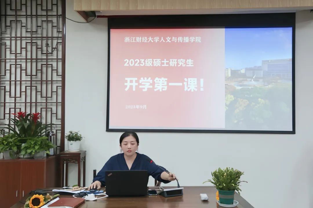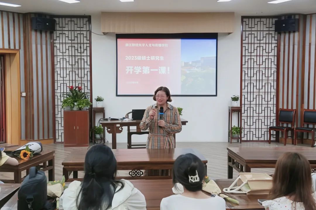 于学院楼212问津书院举行2023级硕士研究生“开学第一课”,学院党委书记高燕老师主讲,学院党委副书记袁慧兰、研究生秘书、辅导员以及全体2023级研究生参加。