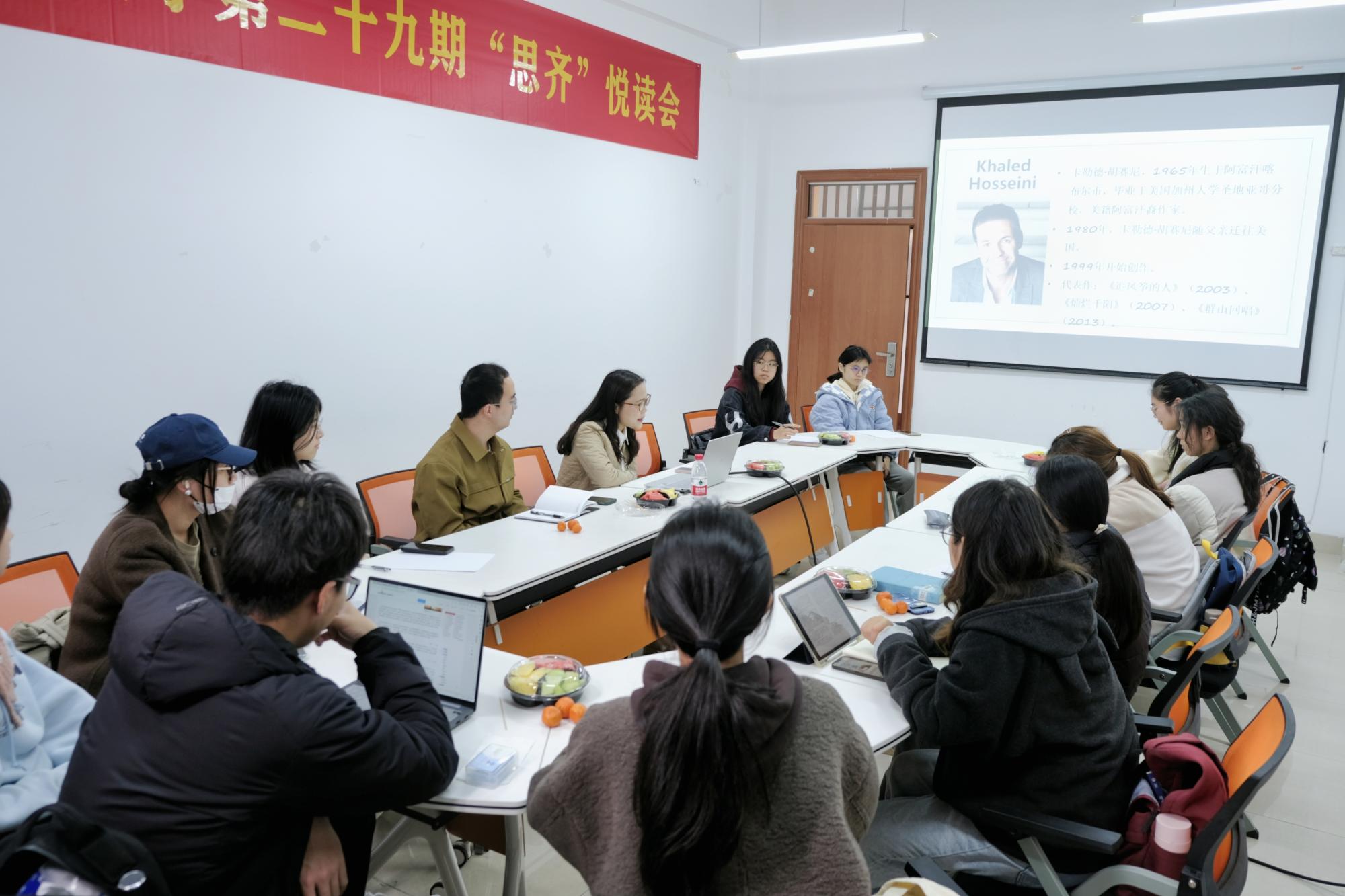 楼403会议室举行,本次读书会由外国语学院邱瑜毅副教授主讲,袁慧兰老师主持,刘财国老师以及十几位同学参加。