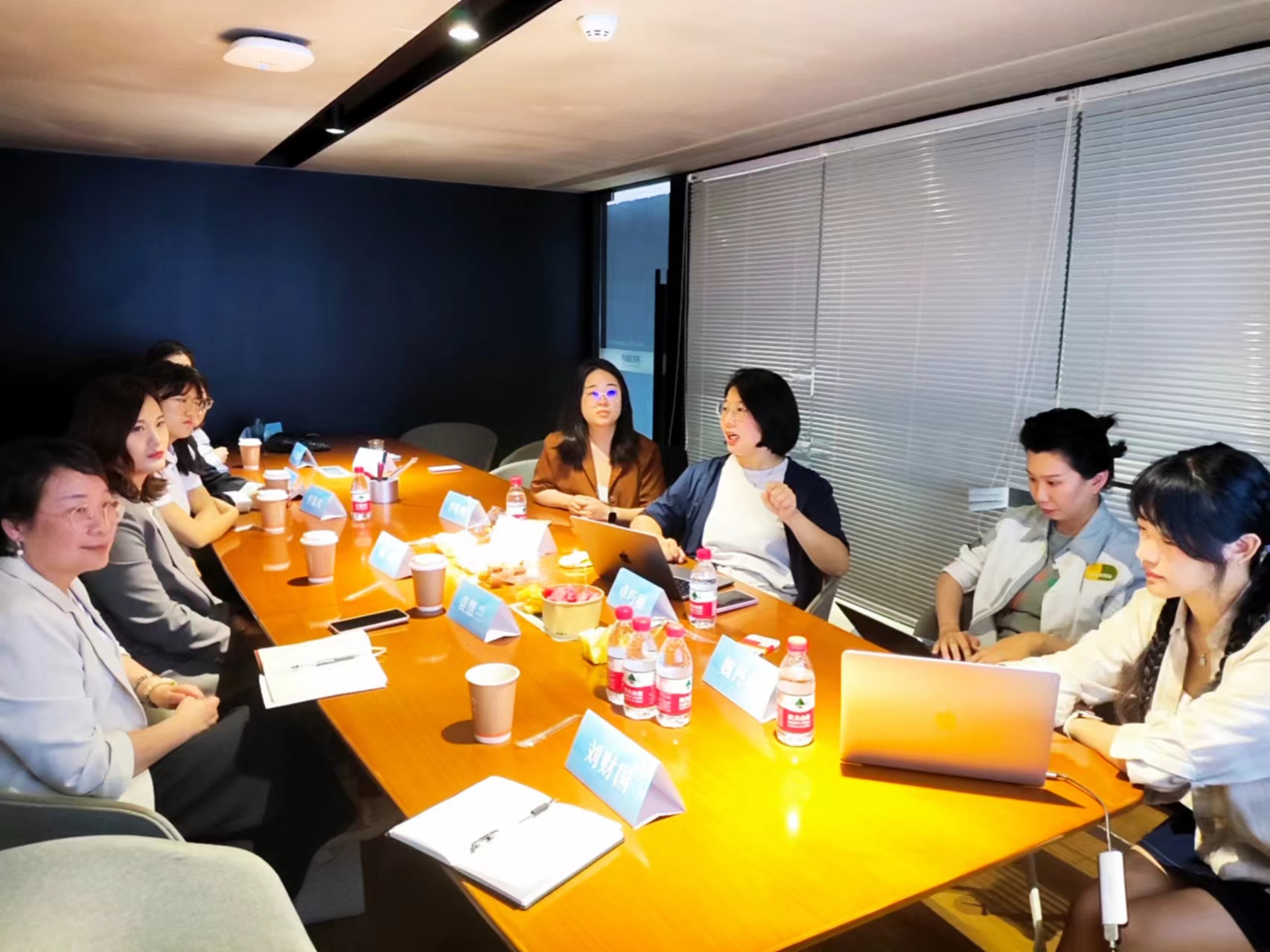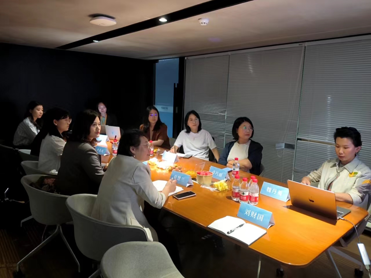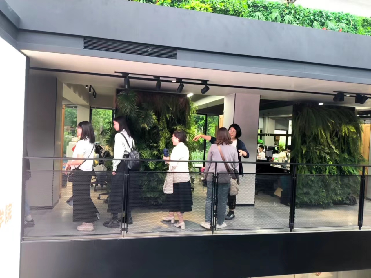 袁慧兰、毋丹一行在卓巧丽的陪同下,参观了公司的办公区、会议区以及休息区。