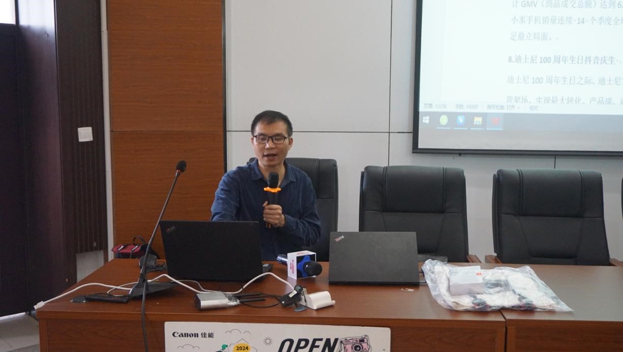 武汉国际传播中心视觉总监、两次获中国新闻奖的贾代腾飞做了《如何用可视化语言讲好中国故事》主题讲座;B站知名UP主、佳能签约讲师李扬做了《视频爆款内容的创意与构思》主题讲座。温州硅基智能科技总经理陈良明做了《AIGC数字人引领视频直播新革命》主题报告,网经社总编辑曹磊做了《财经科技类融媒体的市场化运营及发展模式》的主题报告,易启莱科技的讲师徐谟婕分享了“抖音直播特效创作研习经验”,千寻人工智能科技总经理沈杰分享了“AI实战案例的应用经验”。(下图为部分演讲嘉宾合影)