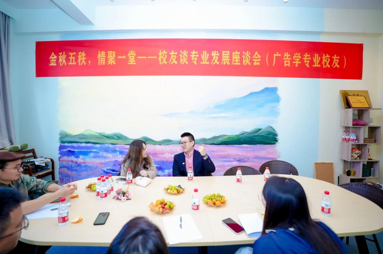 学子在各领域展现着卓越的才华。学院楼内特举办专业发展座谈会,邀请多位杰出校友与专业教师共聚一堂,探讨各专业的现状与未来。会议下设汉语言文学专业、广告学专业、数字媒体艺术与网络与新媒体专业三个分会场,开展深度交流与讨论。