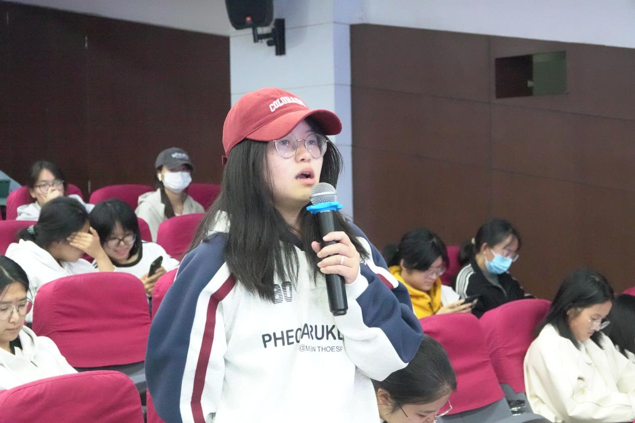 对谈活动现场,同学们踊跃提问,与作家们近距离交流。三位老师就本次讲座的主题给予同学们写作与人生方面的建议。孙甘露表示,大部分人都认为自己是平凡的人,但同时我们也是“非凡”的人,每个人都是独一无二的,每个人的一生都是值得奋斗、值得追求的。石钟山表示,没有人是完美的,人生是一场耐力和意志的比拼,也是面对各种复杂因素的抗争,只要脚踏实地做好自己的事,对自己的人生和家庭有所建树,就不虚此生。黄咏梅希望各位同学树立正确的人生观,加强个人修养与知识储备,在属于自己的《激情燃烧的岁月》里绘画出自己的那一幅《千里江山图》。