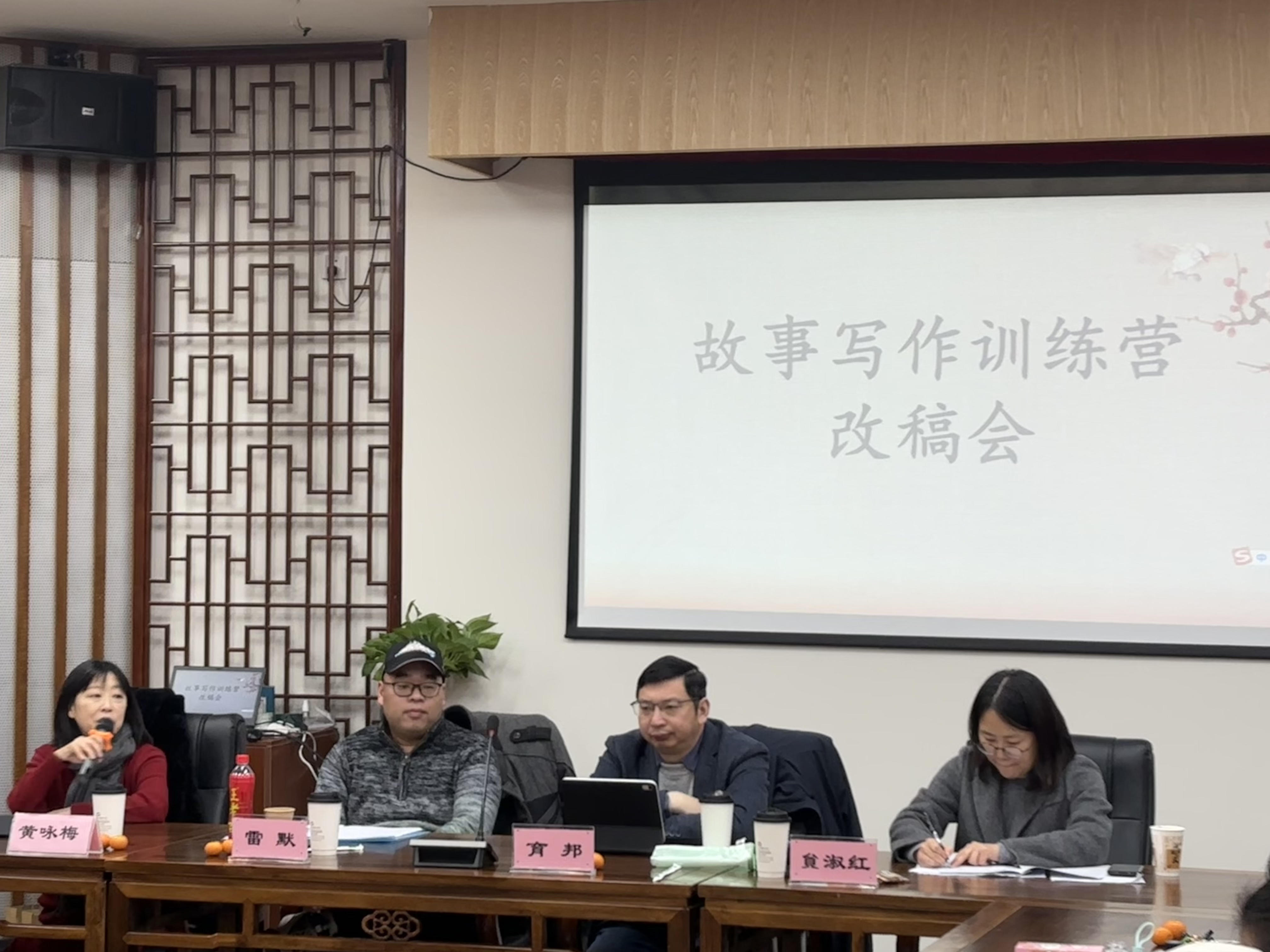 2024年12月25日下午,在问津书院举行《故事写作训练营》改稿会。改稿会邀请了《雨花》杂志主编育邦、《钟山》杂志副主编貟淑红、《文学港》杂志主编雷默三位专家走进课堂,给学生们开展现场小说改稿会,此次改稿会由足球直播在线