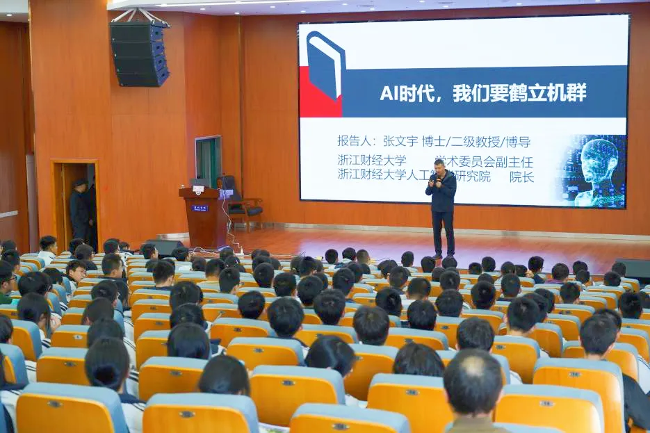 党委副书记袁慧兰带队,校学工部副部长何露霞、文华创新学院党委副书记徐艳妍、校人工智能研究院院长、二级教授张文宇、辅导员陈琛、徐沛村共同参与,走进丽水中学开展招生宣传活动。活动当天,张文宇教授作《AI时代,我们要鹤立“机”群》主题讲座。