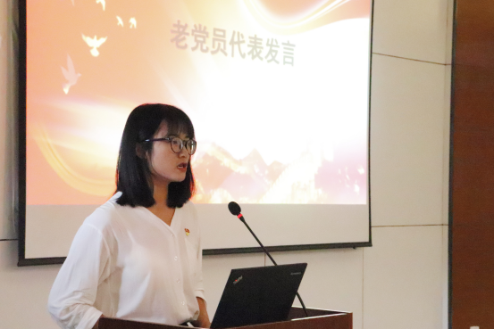 16汉语言文字学研究生闫梦珂同学代表老党员发言。他表示一名党员要坚定信念,强化党员意识,不仅要在组织上入党,更要在思想上、学习上、行动上入党,以自己的实际行动担负起振兴中华的重任