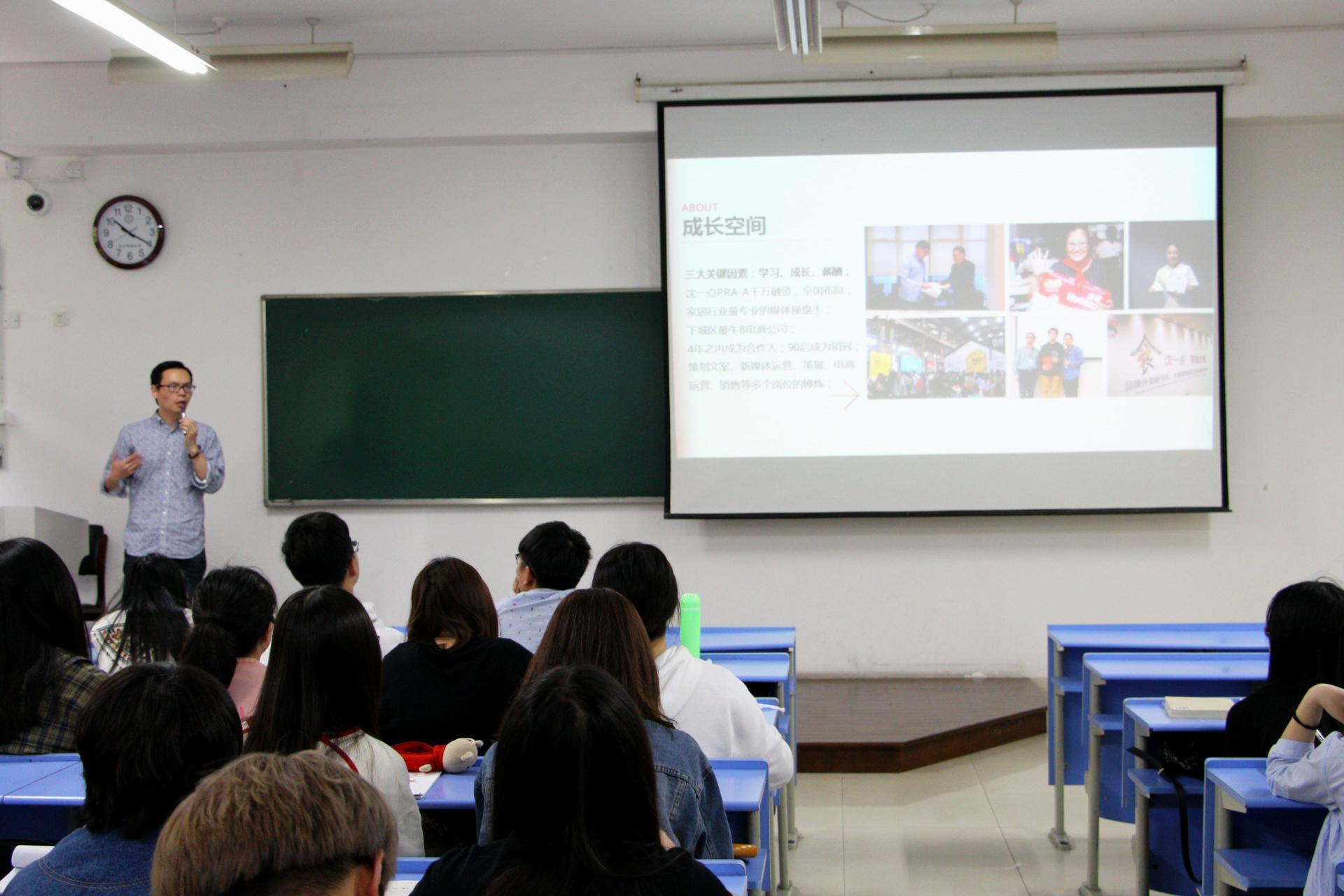 时值春末,大四学生即将毕业、大三学生努力寻找实习机会,这次讲座使同学对自身就业方向和工作职位有一个更详细的规划,在座同学均表示受益匪浅,本次讲座在同学们的掌声与欢笑中圆满结束。