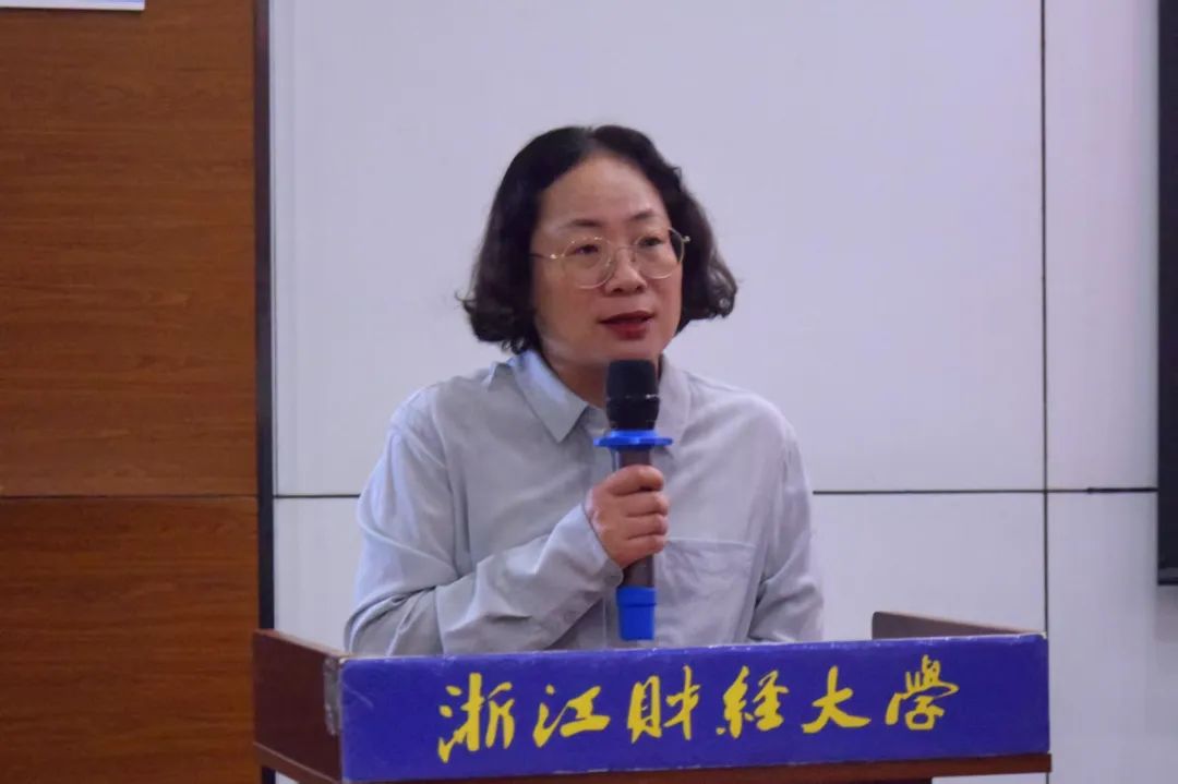 人文与传播学院党委副书记袁慧兰老师发表讲话,她首先对一直以来关心支持我院团学工作的校团委、各兄弟二级学院团委、学生会表示衷心的感谢,并代表学院党委对我院团学组织卓有成效的工作给予充分的肯定。同时,袁慧兰老师对广大青年们提出两点希望和要求:一是希望青年大学生们能够始终坚定理想信念,做志存高远的追梦人;二是鼓励广大青年以“浙财金生”为目标,勤学善思笃行,做本领过硬的奋斗者。最后她呼吁各位代表充分发挥榜样带头作用,积极参与学院建设,为培育具有文明视野和创新精神的人文学子贡献自己的青春力量。