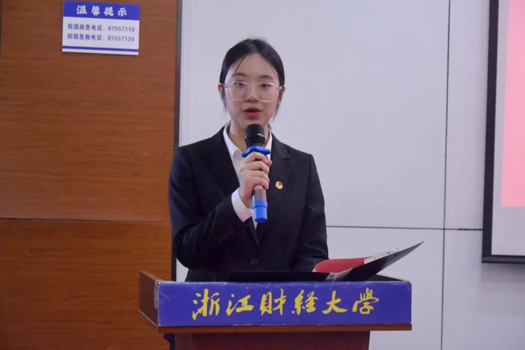 人文与传播学院团委书记李惠惠老师随即致开幕词,明确本次大会的主要任务。李惠惠老师表示,院团学工作始终以“立德树人”为根本任务,扎实推进学风建设,着力培养具有人文底蕴和创新能力的“浙财金生”;鼓励广大青年代表们珍惜这次难得的机会,认真履行代表职责,积极建言献策,为学院发展贡献力量。