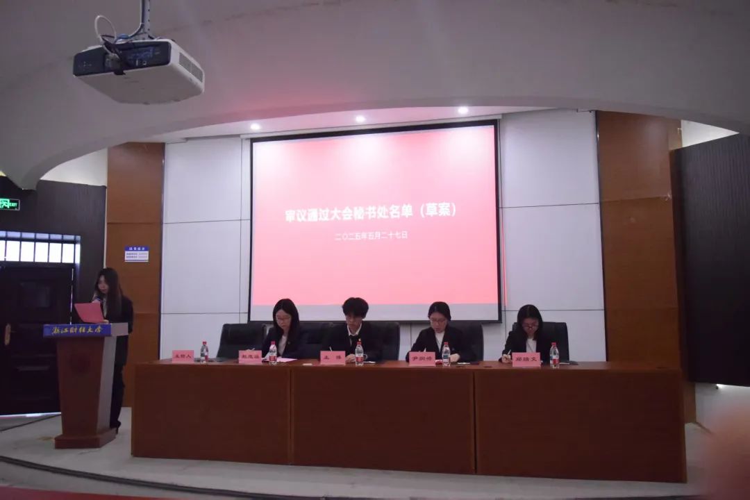 5月27日下午,人文与传播学院第六次学生代表大会于学院楼112报告厅顺利召开。浙江财经大学人文与传播学院党委副书记袁慧兰老师、院团委书记李惠惠老师、校学生会执行主席董若琰、院学生会执行主席王博以及48名学生代表参加大会。信智学院主席团成员周妙思、财税学院主席团成员王非凡、经济学院主席团成员王李沁歆、管理学院主席团成员夏子涵到场祝贺。